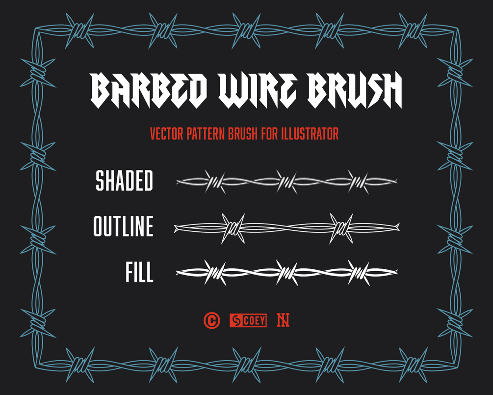 100% Vector Barbed Wire Pattern Brush for Adobe Illustrator.